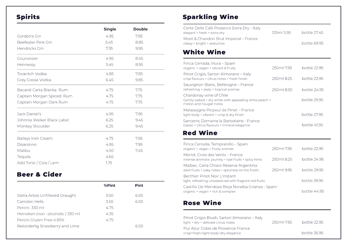crisp flavours + citrus notes + fresh finish/ 250ml 8.25/ bottle 23.95